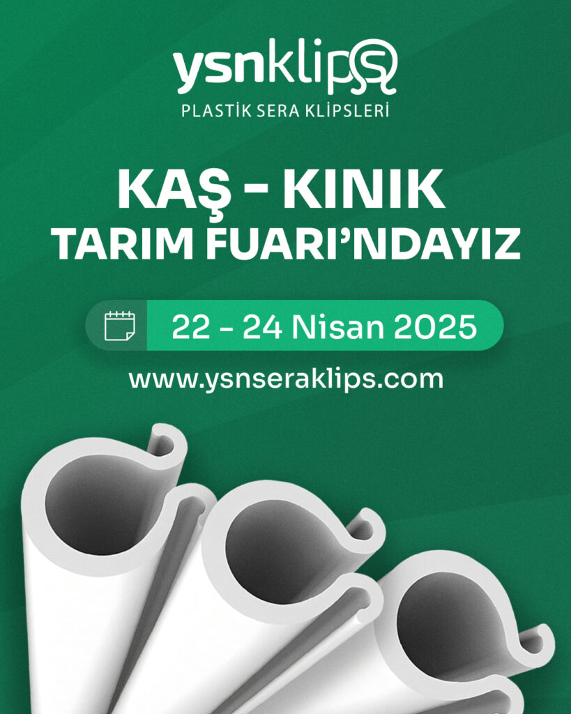 Kaş Kınık’ta 22-24 Nisan tarihleri arasında düzenlenecek olan 4. Kaş Kınık Tarım ve Hayvancılık Fuarı’na tüm çiftçilerimizi ve tarım sektörü profesyonellerini davet ediyoruz. YSN Sera Klips olarak, bu önemli etkinlikte yer alarak, sera ekipmanları alanındaki yenilikçi ve kaliteli çözümlerimizi sergilemek için hazırlıklıyız.